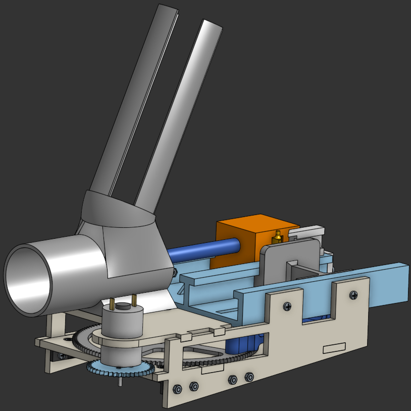 In this project I designed a fully automatic ping pong ball launcher machine. The only thing that drives the machine is a single DC motor. The entire "logic" that fires ping pong balls is all mechanical. The motor rotates a gear with a linkage attached to it. The linkage pushes a shuttle back and forth in the left side of the slide. The slide resets and triggers the firing mechanism. The firing mechanism is wound up with a compression spring and triggered with a lever at the full back position of the slide. Ping pong balls are held in a simple 3D printed tube. The launcher was designed to be manufactured by a lazer cutter and a 3D printer allowing for cheap and easy construction.