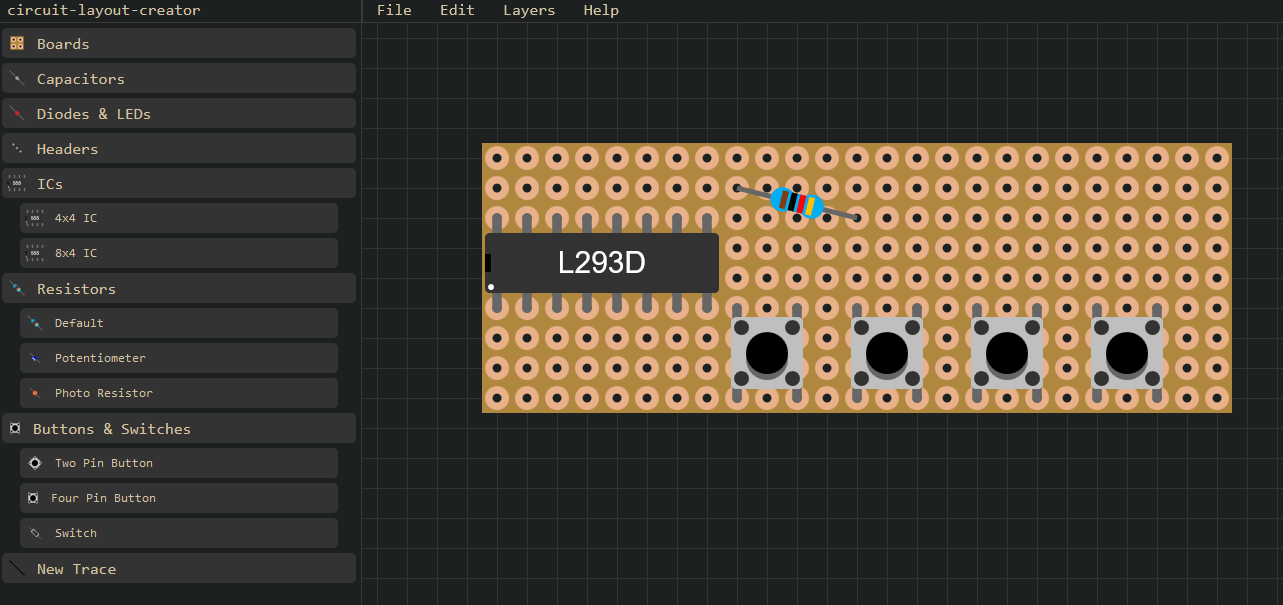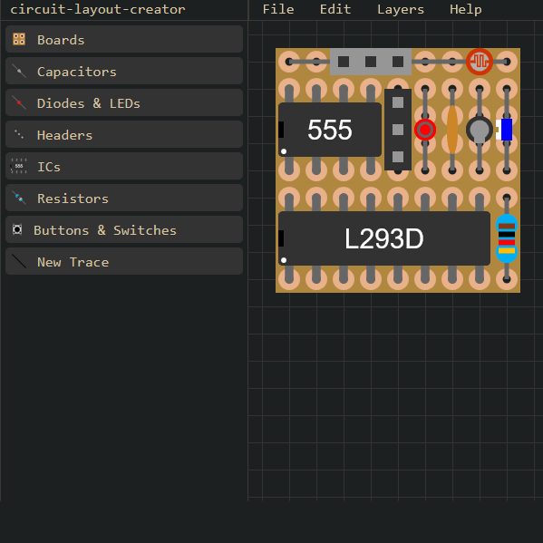 Circuit Layout Creator or CLC is an open source, circuit layout creation website. This project was inspired by DIYLC, with the main difference being that this web-app is compatible on all devices as long as they have a web browser and a physical keyboard. As it stands a basic circuit can be created from start to finish. The biggest change that needs to be made is an improvement to the current control scheme. Everything in this app is done through they keyboard which is the biggest suggested category of change given by the alpha-testers. The control system in the future will be able to integrate the mouse to click and drag components around.