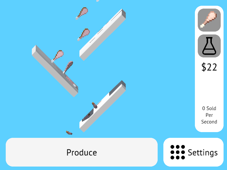 This game gives you the ability to buy different upgrades and evolve the food that you were producing. I used the popular game Egg Inc as heavy inspiration and as such lots of gameplay loops and styles are found in my game.