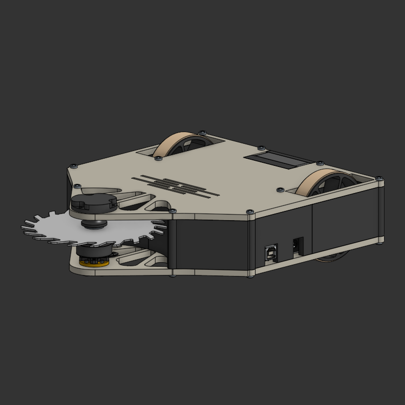 This is the Battle Bot for the HHSS 2022-2023 battle season. This bot uses a plastic spinner as its weapon, driven by an old weed wackers DC motor. The drive train is powered by a pair of 25GA-370 motors controlled through dual L288N drivers and an Arduino Uno receiving bluetooth control inputs. The components in this robot are air cooled by a 50mm computer fan. There was not enough detailed CAD planning involved in this project as it was my groups first time building a complex electromechanical system. A lot of components were just stacked on top of whatever could have held something. We also could not find a suitable weapon to use so we just ended up throwing together a plastic spinner. A lot was learnt while making this robot.