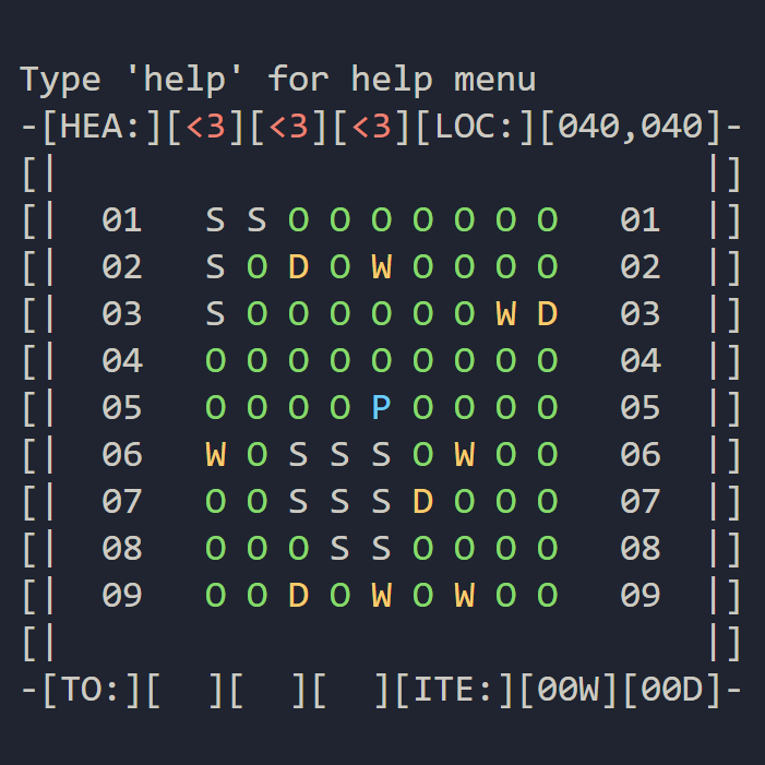 This was the first major game I created in Java which I built in my Grade 11 Computer Science class. The map data is saved in a custom semi human readable format so that someone with basic education could modify their map. Caved will display the game in colour if the terminal the user used supported it, this results in an interesting gameplay experience.